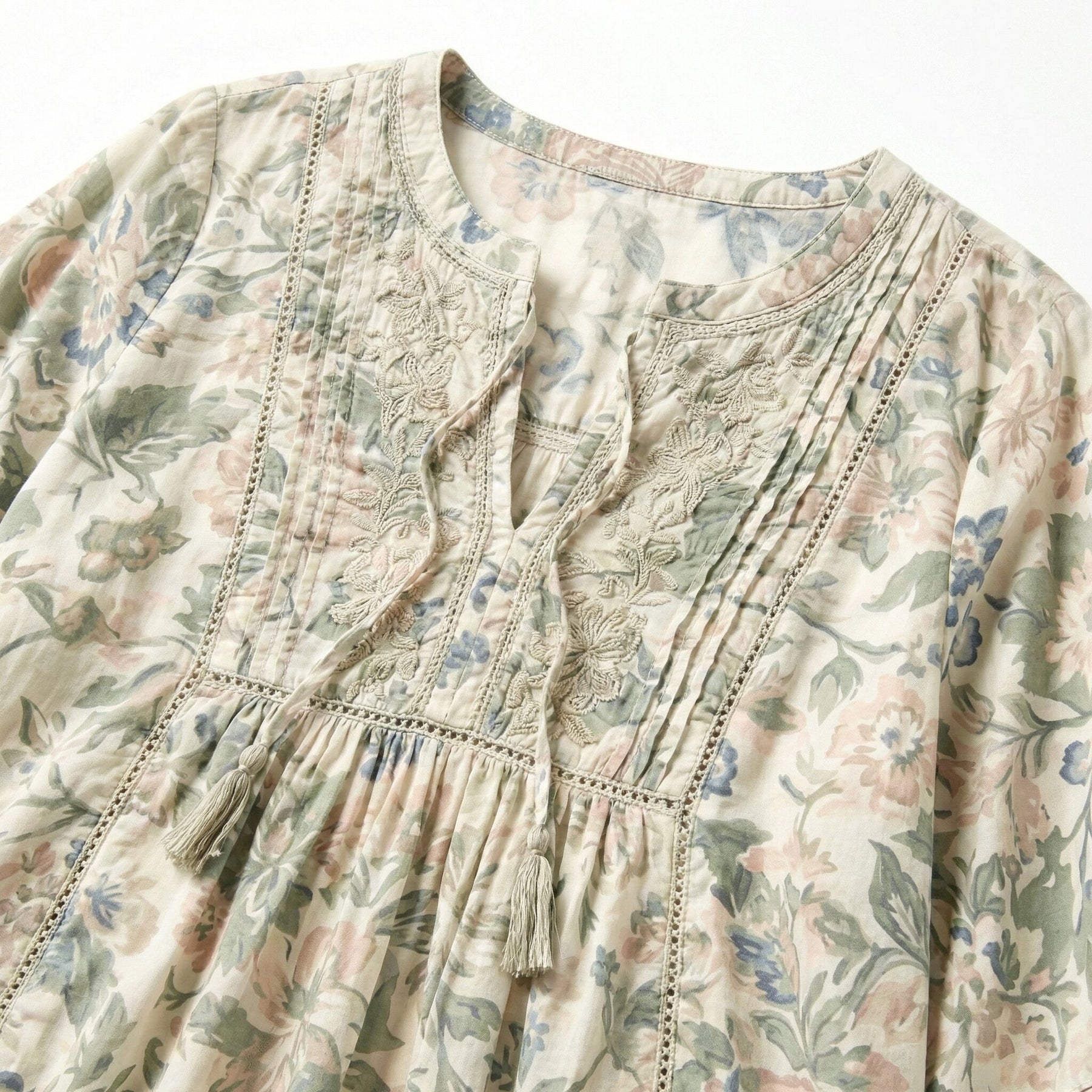 Creme Dame Bluse Med Blomstermønster