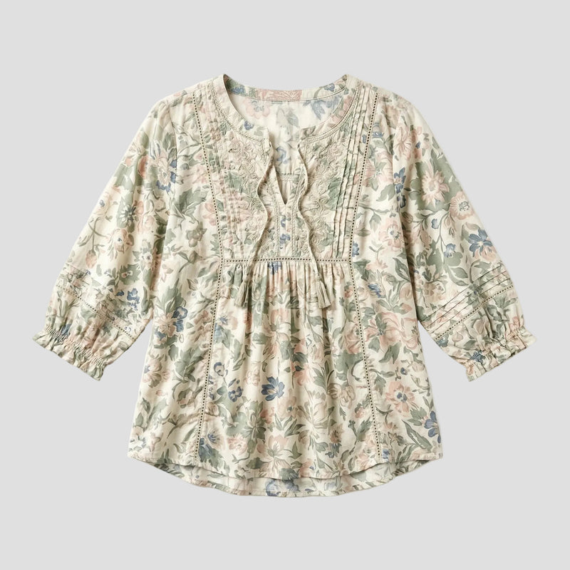 En elegant cremefarvet bluse med et blødt og tidløst blomstermønster. Det lette snit gør den behagelig at bære hele dagen. De lyse nuancer er nemme at kombinere med andre farver i garderoben. En ideel bluse til dig, der foretrækker et roligt og feminint look. Velegnet til både arbejde og fritid.
